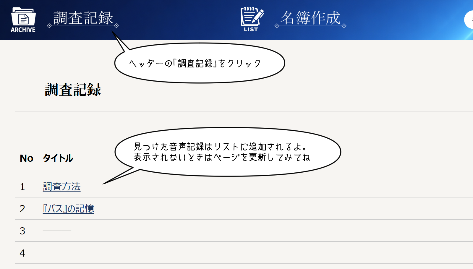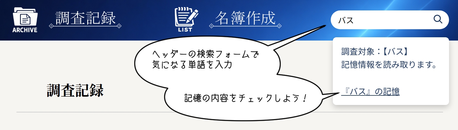 一度見た調査記録は、「調査記録」ページで再確認できるっす。